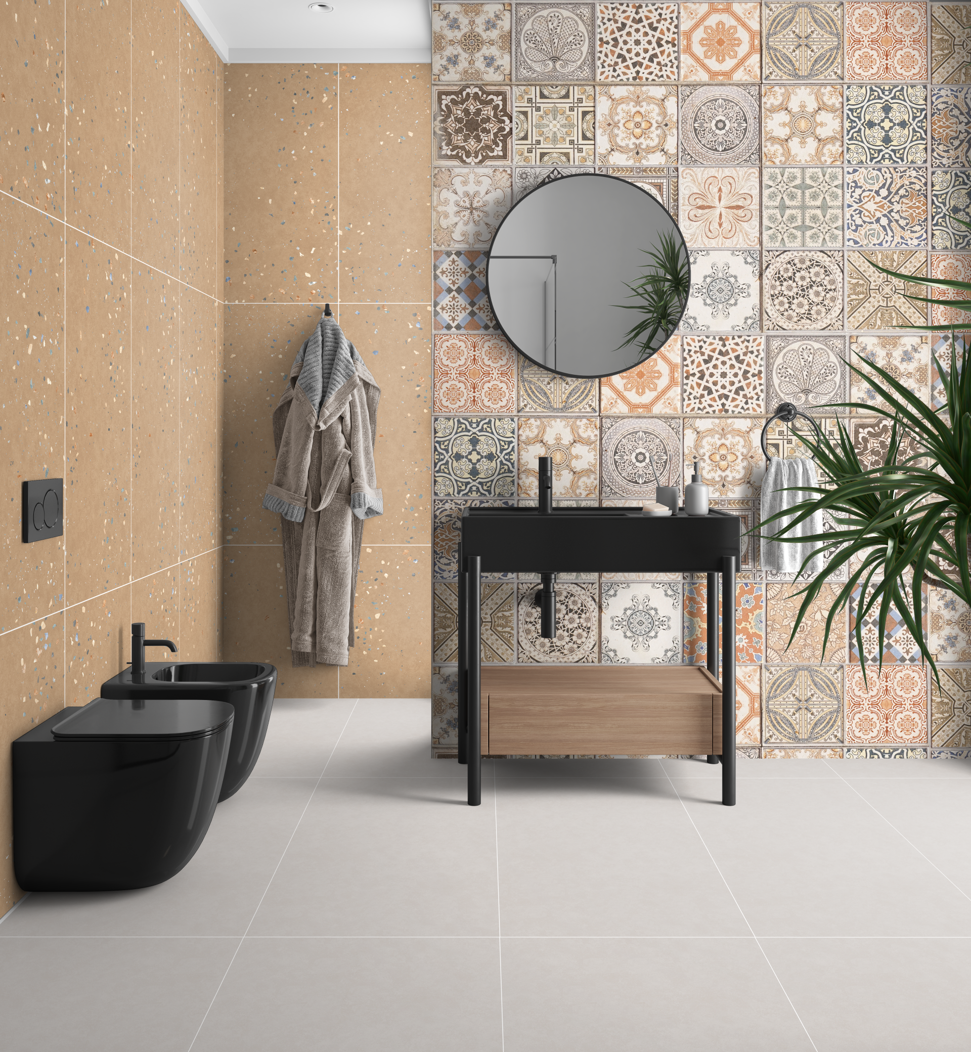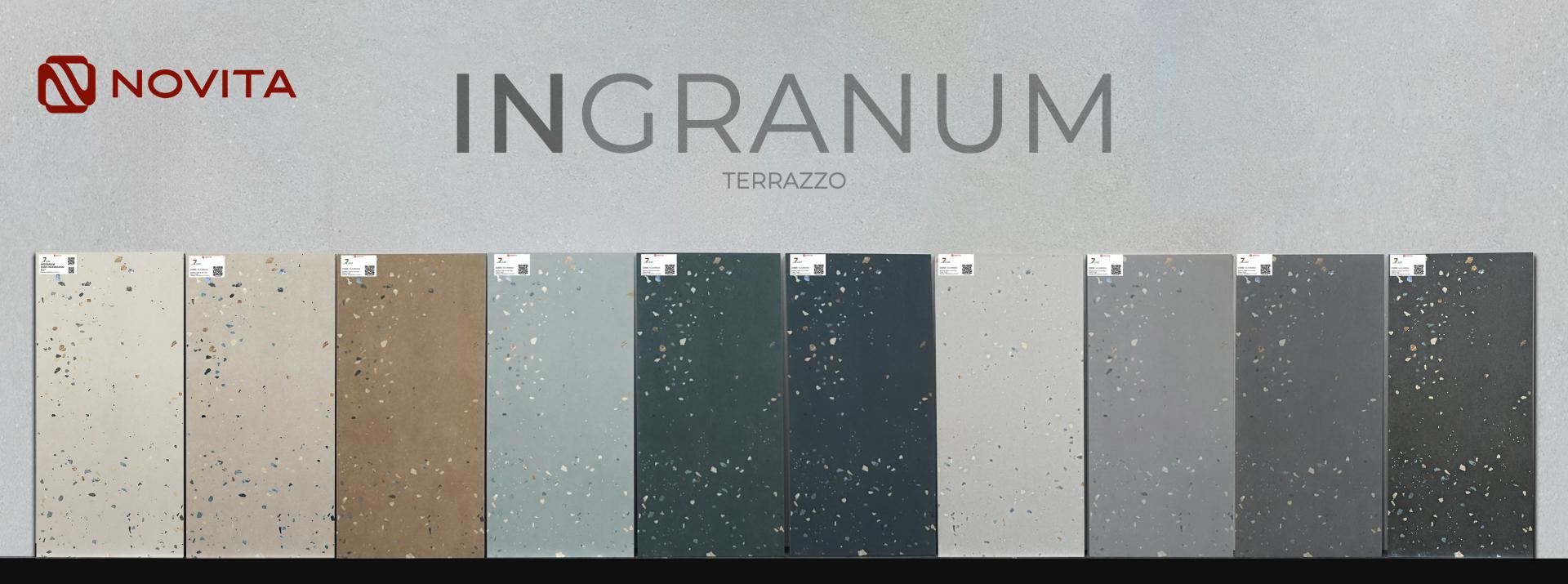 Novita INGRANUM là bộ sưu tập gạch mang tinh thần tối giản hiện đại, tạo dấu ấn bằng sự “đối ngẫu hài hòa” giữa nền Cement mạnh mẽ và hạt đá Terrazzo. Mỗi màu trong bộ sưu tập đều có 2 lựa chọn đồng bộ: một mẫu đơn màu để làm nền sạch thoáng và một mẫu vân hạt để tạo điểm nhấn tinh tế, giúp không gian có chiều sâu mà vẫn giữ sự thanh lịch.